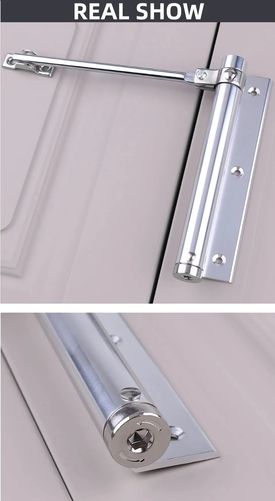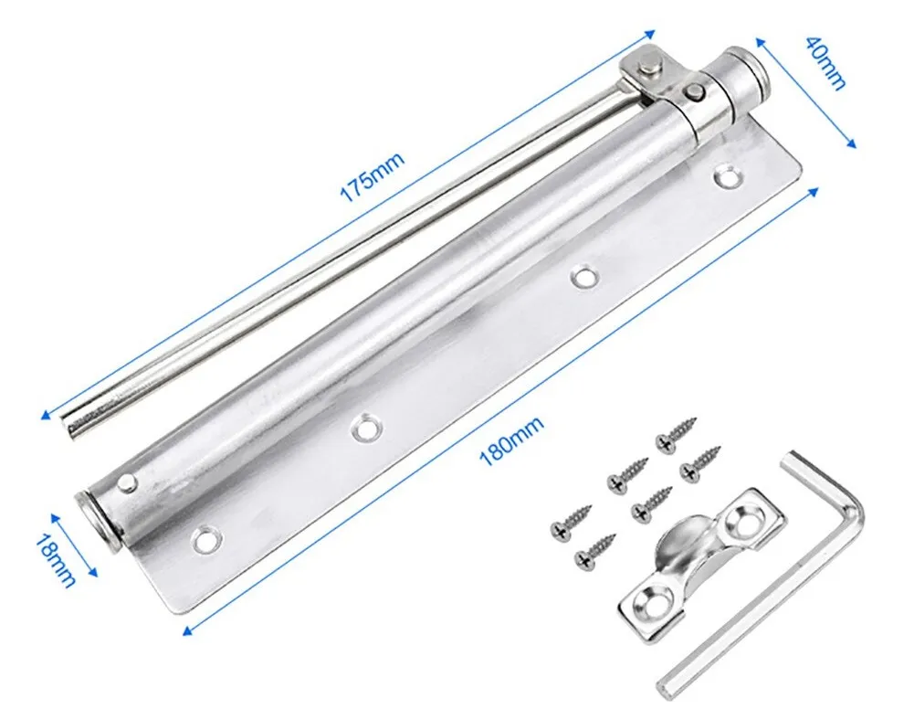 Upgrade your doors with this high-quality automatic door closer, made from durable stainless steel for long-lasting performance. Its compact and sleek design features built-in strong springs that support a 150° opening angle, ensuring smooth and quiet door closing.
