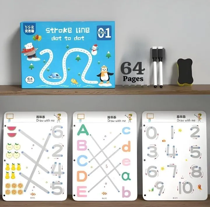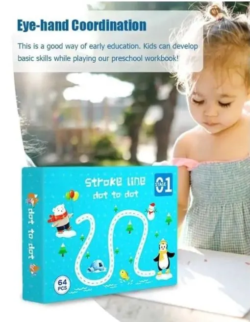 Product details of 64 Pages Stroke Line Dot to Dot Reusable Tracing Workbook for Kids | Educational Learning Puzzle for Children